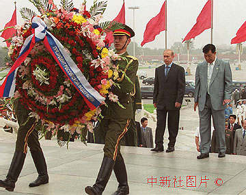 多圖:普京在北京圖片一組(1) 2000年7月19日 17:24 ![]() 普京向紀(jì)念碑獻花圈1 ![]() 普京向紀(jì)念碑獻花圈2