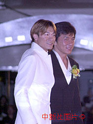 成龍十六日晚與劉德華一齊步入星光大道,出席第十九屆香港電影金像獎(jiǎng)?lì)C獎(jiǎng)晚會(huì)。中新社傳真洪少葵攝