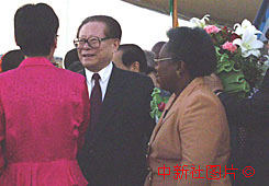 江澤民抵達(dá)南非訪問 2000年4月26日 09:07 ![]() 中國(guó)國(guó)家主席江澤民4月24日傍晚(當(dāng)?shù)貢r(shí)間)抵達(dá)約翰內(nèi)斯堡,受到南非外長(zhǎng)和當(dāng)?shù)厝A人的熱烈歡迎。中新社記者 彭偉祥 攝