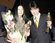 圖文:宋康昊高素榮分獲韓國(guó)大鐘獎(jiǎng)男女主角 2001年4月26日 10:41 ![]() 中新網(wǎng)漢城4月26日消息:韓國(guó)大鐘獎(jiǎng)?lì)C獎(jiǎng)儀式于昨日下午在漢城世宗文化會(huì)館大禮堂舉行,影片《共同警備區(qū)JSA》主人公宋康昊獲得最佳男主角獎(jiǎng),最佳女主角獎(jiǎng)則是《一天》主角高素榮。 今年最佳影片獎(jiǎng)歸屬樸贊郁導(dǎo)演的《共同警備區(qū)JSA》;韓志升執(zhí)導(dǎo)的影片《一天》則囊括了導(dǎo)演獎(jiǎng)、最佳女主角獎(jiǎng)、審議委員會(huì)特別獎(jiǎng)、女配角獎(jiǎng)等主要獎(jiǎng)項(xiàng)。而近掀起韓國(guó)影壇颶風(fēng)的影片《朋友》卻與獎(jiǎng)項(xiàng)失之交臂。 宋康昊表示,“一半的榮譽(yù)應(yīng)該屬于一同出演的李柄憲”,并跑到觀眾席與李炳憲熱烈擁抱。 高素榮雖被譽(yù)為忠武路黑馬,但是一直籠罩在沉銀河和全杜妍的陰影之下。此次綞憑借《一天》登上領(lǐng)獎(jiǎng)臺(tái)。 通過(guò)網(wǎng)民評(píng)選的男女印象獎(jiǎng)獲得者分別為李炳憲和沉銀河。 據(jù)韓國(guó)中央日?qǐng)?bào)報(bào)道,《共同警備區(qū)JSA》(作品獎(jiǎng)、導(dǎo)演獎(jiǎng)、音響?yīng)、美術(shù)獎(jiǎng))、楊潤(rùn)浩(音譯)導(dǎo)演的《Libera ME》(攝像獎(jiǎng)、照明獎(jiǎng)、剪輯獎(jiǎng)、特殊效果獎(jiǎng))以及《一天》分別囊括了4大獎(jiǎng)項(xiàng)。 |
