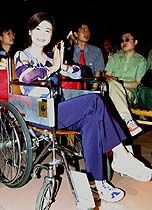 圖:吳小莉帶腳傷參加大學(xué)生申奧會(huì) 2001年6月4日 13:25 ![]() 小莉帶腳傷參加大學(xué)生申奧會(huì)。魏孝明 攝
