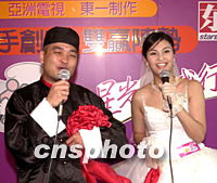 ![]() 香港亞洲電視·東一制作26日在香港舉行記者會(huì),宣布攜手制作電視節(jié)目《省港傾情男女》。該節(jié)目將會(huì)為天下男女牽動(dòng)紅線,招募中國(guó)大陸及香港男女參加的愛情搭檔節(jié)目。圖為該節(jié)目主持人葛民輝及姚安娜穿著傳統(tǒng)禮服婚紗介紹節(jié)目。中新社圖 鄧慶樂 攝