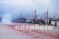 圖:休漁期結(jié)束漁民出海 2001年08月01日 19:50 ![]() 八月一日,休漁期結(jié)束。粵西的三百五十艘漁船在廣東茂名博賀漁港齊齊揚帆出海。中新社圖 姜玉峰 攝