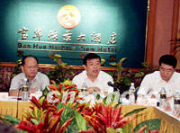 粵海鐵路通道加緊建設(shè) 2003年坐火車去海南 2001年09月03日 07:35 ![]() 9月2日上午,粵海鐵路通道建設(shè)領(lǐng)導(dǎo)小組第五次會議決定,粵海鐵路通道項目新增資本金七億元人民幣,海南島西環(huán)線即將全面開工建設(shè)。海南省官員汪嘯風(左)、鐵道部副部長蔡慶華(中)、廣東省常務(wù)副省長歐廣源等出席了會議。中新社圖 王辛莉 攝