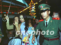 圖:韋唯在浙江湖州演出 2001年10月04日 17:34 ![]() 中國著名歌唱演員韋唯3日晚在浙江湖州演出后,由武警戰(zhàn)士護衛(wèi)從后臺走向休息室。中新社記者 趙振清 攝  |