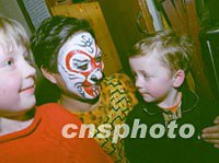 圖:老外在老舍茶館見識中國文化 2001年10月16日 14:20 ![]() 京味十足的北京老舍茶館,成為越來越多外籍人士見識中國傳統(tǒng)文化的好場所。日前,一位外國小孩在母親唐可邁(音意)帶領(lǐng)下,到這里看戲、品茶后意猶未盡非要見臺上的演員。演孫悟空的北京京劇院齊建國先生滿臉會動的花臉令小孩驚異不已。中新社記者 王麗南 攝  |