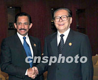 圖:江澤民會見文萊蘇丹 2001年10月20日 16:18 ![]() 10月20日,中國國家主席江澤民在上海會見文萊蘇丹哈吉·哈桑納爾·博爾基亞。中新社圖 |