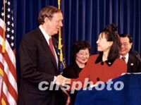 趙小蘭之妹趙小美出任紐約州消費(fèi)者保護(hù)廳長(zhǎng) 2002年01月18日 11:15 ![]() 紐約州州長(zhǎng)柏德基日前宣布任命華裔趙小美為紐約州消費(fèi)者保護(hù)廳廳長(zhǎng)。圖為趙小美(右二)在接受任命后與柏德基州長(zhǎng)(左一)握手。右一為趙小美的父親趙錫成,左二為母親朱木蘭。中新社記者 龔文謨 攝