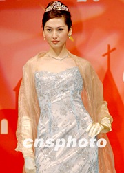 圖:港姐李嘉慧在香港婚紗展上盡顯美態(tài) 2002年02月02日 20:31 港姐李嘉慧2日在香港舉行的情人節(jié)婚紗及用品展上,演繹“麗都魅力新娘婚紗晚裝”盡顯美態(tài)。中新社傳真 洪少葵 攝