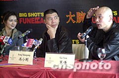 圖文:《大腕》登陸香港 馮小剛攜主角宣傳造勢 2002年03月13日 17:52 ![]() 電影《大腕》導(dǎo)演馮小剛(中)、男女主角葛優(yōu)、關(guān)芝琳13日在香港與傳媒會面,男主角葛優(yōu)在會上摸著光頭回答傳媒問題,馮小剛、關(guān)芝琳在旁則細(xì)心聆聽!洞笸蟆穼⒂3月在香港上映。中新社圖 鄧慶樂 攝