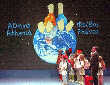 圖:2004年雅典奧運(yùn)會(huì)正式吉祥物 2002年04月05日 13:53 ![]() 雅典兒童在4月4日的一個(gè)典禮上,站在銀幕前聽(tīng)2004年雅典奧運(yùn)會(huì)兩個(gè)吉祥物的起源講解。法新社