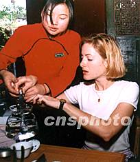 圖:美國姑娘向中國茶藝小姐學習茶道 2002年04月23日 14:24 ![]() 出生于法國的美國姑娘可麗,具有法國和美國的文化背景,近期執(zhí)教于泉州的她,卻對中國茶文化異常著迷,一有空閑,可麗便向中國茶藝小姐學習中國茶道技藝。中新社圖 陳勇 攝