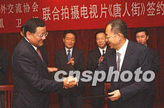 組圖:電視片《唐人街》簽約儀式在京舉行 2002年06月21日 14:59 ![]() 中國(guó)海外交流協(xié)會(huì)和香港鳳凰衛(wèi)視二十一日在北京舉行關(guān)于聯(lián)合拍攝電視片《唐人街》簽約儀式。圖為中國(guó)海外交流協(xié)會(huì)副會(huì)長(zhǎng)劉澤彭(右)與鳳凰衛(wèi)視董事局主席劉長(zhǎng)樂(lè)在簽約儀式上。作者:武仲林