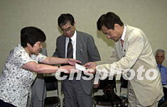 ![]() 花岡事件受難者聯(lián)誼會2日在日本國會發(fā)表《致日本內(nèi)閣函》,要求日本政府正視強(qiáng)擄、奴役中國戰(zhàn)俘勞工的歷史,承擔(dān)政治、法律、道義上的責(zé)任,公開、正式地向中國人民謝罪。圖為受難者家屬代表王紅向日本國會議員提交函件。中新社記者 陶光雄 攝