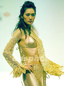 ![]() 香港知名時裝設(shè)計師馬偉明設(shè)計的一款從側(cè)面展現(xiàn)女子美麗身段的上裝,前日在香港時裝節(jié)晚會上展示。任晨鳴 攝