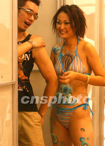 圖:酷暑難當(dāng) 京城青年興起人體彩繪游戲 2002年07月14日 14:03 ![]() 中國各地今夏酷暑難當(dāng),京城青年興起人體彩繪游戲。她們展露美麗身材,追求彩繪與三點(diǎn)式服飾的和諧,尤為賞心悅目。作者:賈國榮