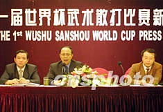圖:首屆世界杯武術(shù)散打賽將于25日在上海開幕 2002年07月24日 18:53 ![]() 首屆世界杯武術(shù)散打賽將于二十五日在上海拉開戰(zhàn)幕。本次比賽吸引了來自中國、美國、巴西、韓國等十五個國家和地區(qū)的四十四名“武林高手”前來參賽。圖為國際武術(shù)聯(lián)合會秘書長嚴建昌(中)二十四日在新聞發(fā)布會上介紹比賽情況。作者:湯彥俊