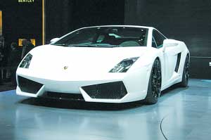 蘭博基尼在本屆車展上展出首次在中國亮相的Gallardo系列的全新車型Gallardo LP560,以及頂級Murcielago系列的一款特別版輕量級車型Murcielago SV。此外,Murcielago LP640也將同臺亮相。