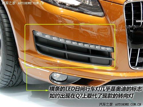 LED燈組是現(xiàn)在最流行的趨勢,從豪華車到微型車都在逐步采用這樣的設(shè)計(jì),而奧迪無疑是這方面的先驅(qū)之一,應(yīng)用LED日間行車燈最拿手的也是奧迪,現(xiàn)在它將這一幾乎成了標(biāo)志的組件裝在了Q7上。
