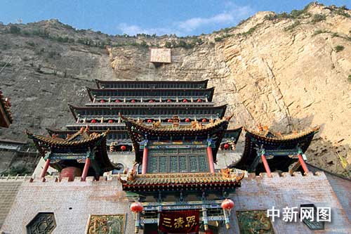 雄偉壯麗的大羅宮,兩側(cè)是神秘奇險(xiǎn)的白云洞和白云庵。白云洞位于大羅宮北側(cè),百米崖壁上有一洞口,柴扉半啟,是資深高道閉關(guān)辟谷之所。這里,陰雨前常有白云飄出,故稱白云洞。清代乾隆年間介休名士王佑曾賦“深山多白云,洞在云深處,竟日寂無人,白云自來去”的詩(shī)句,道出了這一景觀的奇妙和獨(dú)特。白云庵深藏于百米懸崖上一天然石洞中,內(nèi)有釋迦牟尼和文殊、普賢塑像,為宋代風(fēng)格。塑像身后有6塊0.6平方米的石板,上面刻有《金剛經(jīng)》經(jīng)文,雖年深日久,但保存基本完好。在此原無徑可尋的懸崖絕壁之上造像、勒石,其難度之大可想而知。古人那種不畏艱險(xiǎn)的執(zhí)著追求,不禁使人嘆服!現(xiàn)在已筑起了懸空通道,供游客觀賞此庵。