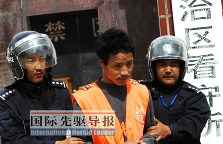 截至4月9日,西藏公安機關(guān)已刑事拘留涉嫌打砸搶燒犯罪嫌疑人953人,其中,經(jīng)檢察機關(guān)批準逮捕403人。4月13日,“3·14”嚴重暴力事件2號犯罪嫌疑人貢秋頓珠對自己的施暴行為供認不諱,并承認用刀砍人的事實。