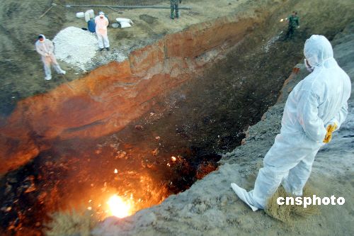 |   十一月十六日,新疆烏魯木齊縣安寧渠鎮(zhèn)的防疫人員在深約五米的掩埋坑內(nèi)集中焚燒收集來的家禽。目前,新疆兩地疫區(qū)已在三公里范圍內(nèi)撲殺家禽三十二點二五萬只。據(jù)中國農(nóng)業(yè)部公布,新疆澤普縣、烏魯木齊縣兩地發(fā)生高致病性疫情。疫情發(fā)生后,當?shù)卣皶r啟動有關應急預案,在疫區(qū)各交通路口設立臨時動物簡易消毒站,禁止疫區(qū)禽類產(chǎn)品運出,并撲殺疫區(qū)內(nèi)所用禽類,進行無害化處理,關閉疫區(qū)周圍十公里范圍內(nèi)的所有禽類及其產(chǎn)品交易市場。作者:姚剛(通訊員)  |  |  |