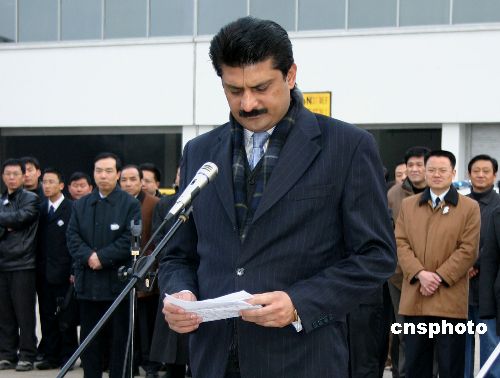 |   二月十八日晨六點五十五分,在巴基斯坦遭到武裝襲擊遇難的三名中國工程師遺體由中國南方航空公司波音-757飛機運抵安徽合肥駱崗機場,機場舉行了簡短而肅穆的迎靈儀式。專程從巴基斯坦護送到中國合肥的巴基斯坦內(nèi)政部國務(wù)部長哈亞特(前左),在機場代表巴政府對中國工程技術(shù)人員遇害向中國人民和遇難者家屬表示悲痛和哀悼,并表示巴政府定會查明真相、嚴懲兇手,同時加大安全警衛(wèi),以確保中方在巴人員的安全。作者:崔佳明    |  |  |