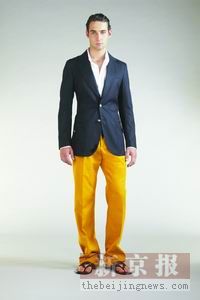 以單色為主的本季男裝今年更偏向于成熟的橙色、黃色等暖色調(diào)。