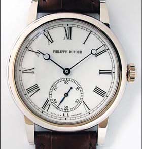 Simplicity的魅力在哪里?打一個比喻:假如把一些頂級品牌在表中的地位比作車中的勞斯萊斯,要知道勞斯萊斯畢竟還有一個商業(yè)化的流水線,而Simplicity完全就要靠Dufour和幾個學徒的雙手了。Philippe Dufour 在深具幾何美學的1/2夾板配置下,結合極盡繁復的手工制表技藝,每一個橋板都經過仔細的倒角打磨,每一個零件都經過完美的雕琢。