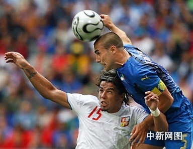 意大利隊(duì)今天放棄了意甲金靴托尼;捷克射手巴羅什帶傷首次亮相,首輪負(fù)傷的揚(yáng)·科勒坐在替補(bǔ)席上。上半場(chǎng),防守穩(wěn)固的意大利隊(duì)被迫換人取得意外之喜。頂替腹股溝拉傷的內(nèi)斯塔出場(chǎng)的馬特拉齊,在第二十五分鐘接托蒂開出的角球頭球攻門得分。半場(chǎng)結(jié)束前,捷克隊(duì)波拉克得到第二張黃牌被罰下場(chǎng),場(chǎng)上局勢(shì)開始向意大利隊(duì)傾斜。第八十七分鐘,意大利隊(duì)替補(bǔ)出場(chǎng)的因扎吉帶球突入禁區(qū),打進(jìn)了自己三次征戰(zhàn)世界杯的首個(gè)進(jìn)球,扮演了關(guān)鍵殺手。