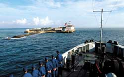 南沙守備部隊(duì)的執(zhí)勤哨位散布在遙遠(yuǎn)的南沙群島。那里滄海茫茫,孤礁座座,堅(jiān)守在礁堡上的官兵,既要戰(zhàn)勝高溫高濕高鹽的環(huán)境,又要經(jīng)受孤獨(dú)寂寞艱險(xiǎn)的考驗(yàn),任務(wù)之艱巨,條件之艱苦,常人難以想象。出于對官兵的關(guān)心和保持戰(zhàn)斗力的需要,南沙守備部隊(duì)實(shí)行輪換制。今天,我們有幸隨同第77批守礁將士一起出征。