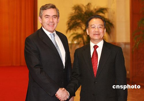 溫家寶主持儀式歡迎英國(guó)首相布朗