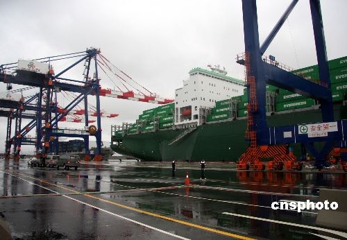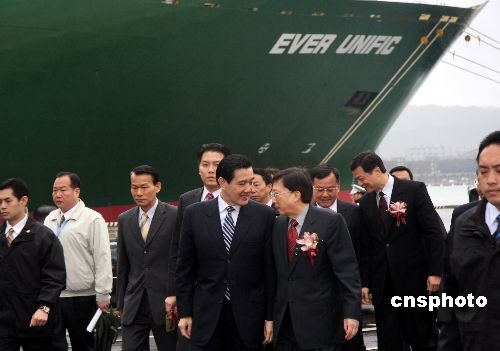 3月9日上午,位于臺(tái)北縣八里的臺(tái)北港貨柜儲(chǔ)運(yùn)中心正式啟用營(yíng)運(yùn)。中新社發(fā) 陳立宇 攝