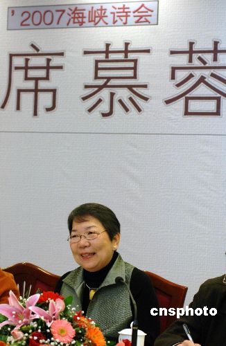 十二月二十二日,由福建省文學(xué)藝術(shù)界聯(lián)合會(huì)、《臺(tái)港文學(xué)選刊》雜志社、福建省文學(xué)藝術(shù)對外交流中心主辦的2007海峽詩會(huì)“天和地諧,人和詩諧——席慕蓉海峽西岸行”在福州拉開序幕,并于當(dāng)天在福建會(huì)堂舉行了席慕蓉作品研討會(huì)。圖為席慕蓉參加研討會(huì)。中新社發(fā) 王東明 攝