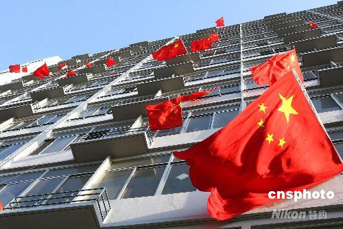 4月22日,北京理工大學(xué)多處宿舍樓紛紛掛出國旗,理性表達(dá)愛國熱情,其中毗鄰?qiáng)W運(yùn)場館的北理工體育館新1樓南側(cè)掛有近70面國旗。據(jù)了解,該樓住有各學(xué)院的本科生逾2000人,上周六便有人掛起國旗,21日午后雨過天晴后不少宿舍紛紛響應(yīng)。該校新聞發(fā)言人賀亞蘭表示,學(xué)生在自己宿舍掛國旗,是理性的正常愛國舉動(dòng)。中新社發(fā) 鄭雄增 攝