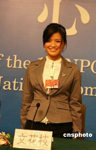 三月六日,十一屆全國(guó)人大一次會(huì)議舉行首場(chǎng)集體采訪,十位基層代表集體亮相。來(lái)自湖南的二十六歲女導(dǎo)游文花枝因在一起嚴(yán)重的交通意外營(yíng)救過(guò)程中舍己救人,而被人們譽(yù)為“中國(guó)最美導(dǎo)游”,成為全國(guó)人大最年輕的代表之一。中新社發(fā) 吳慶才 攝