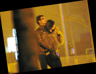 本月24日晚,北京,音樂才子李泉和友人在保利大廈后的餐廳共享大餐后,和一名身穿裘毛大衣的神秘女子一起離開,站在路邊等待出租車時,李泉表現(xiàn)得憐香惜玉,毫不避諱地將這名女子攬在懷中,極為親密曖昧,兩人關(guān)系可見非同一般。當這名女子轉(zhuǎn)向鏡頭時,記者認出是MTV全球音樂電視臺主持人朱珠。兩人卿卿我我,沉醉在甜蜜氛圍中,完全忘卻了北京的寒風。之后,兩人乘坐出租車離去,上車后,終于激情難耐,相擁熱吻。