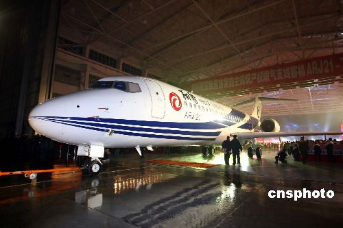 中國首架自主研制、擁有完全自主知識產(chǎn)權(quán)的新型渦扇支線客機ARJ21-700飛機28日在上海首飛。