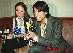 由著名模特瞿穎、胡兵、琦琦出任股東的京港合資公司--北京種星堂文化藝術(shù)交流有限公司7月15日在北京成立,圖為胡兵(右)、琦琦在該公司成立儀式上接受媒體的采訪。中新社記者:張勤 攝