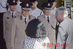 香港行政長(zhǎng)官董建華20日在殯儀館參加因公殉職的香港高級(jí)入境事務(wù)主任梁錦光喪禮。中新社傳真洪少葵攝