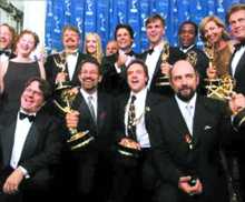 第52屆電視艾美獎揭曉 “白宮”壓倒“黑道” 2000年9月12日 14:18 ![]() 破了紀錄的《白宮群英》劇組人員在艾美獎頒獎禮上歡呼雀躍 中新網洛杉磯9月12日消息:第52屆電視艾美獎于洛杉磯時間9月10日揭曉,《白宮群英》(The West Wing),以9項大獎?chuàng)魯×送@18項提名的《人在江湖》(The Sopranos)。 《白宮群英》是以美國總統(tǒng)與其精英幕僚為主角,描寫這些人置身于權力中心的白宮,如何運用權力與決策,應付新聞媒體與復雜人際關系的精彩過程。 《白宮群英》還打破了之前《仁心仁術》8項獎座的紀錄,以最佳戲劇類電視影集、最佳戲劇類男女配角、編劇、導演等9項大獎,再次刷新艾美獎得獎紀錄。 據(jù)此間媒體消息,原本大家看好的HBO電視劇《人在江湖》,在十八項提名中,只拿下了最佳戲劇類男主角一個大獎,“白宮”終于蠃得勝利,“黑道”不再橫行霸道!(完) 相關報道:艾美獎頒獎前夕美黑人演員爭取公平獲獎機會 |