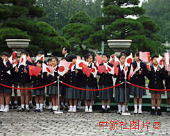 日本首相森喜朗今天在日本東京迎賓館舉行隆重的歡迎儀式,歡迎中國(guó)總理朱镕基總理訪日。圖為日本橫濱山手中華學(xué)校的華僑小學(xué)生揮舞中日兩國(guó)國(guó)旗列隊(duì)歡迎。中新社記者:王曉暉