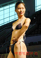 在日前結(jié)束的中國(guó)首屆職業(yè)模特選拔賽上,選自中國(guó)各地院的女模特選手在T型臺(tái)上一展風(fēng)采。圖為來自北京服裝學(xué)院的模特選手身穿泳裝展示。中新社記者 錢興強(qiáng) 攝