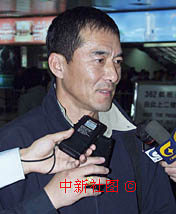 第九屆中國金雞百花電影節(jié)近日將在南寧舉行。圖為電影《生死抉擇》中的男主角15日在南寧機(jī)場(chǎng)接受記者采訪。中新社記者 錢興強(qiáng) 攝