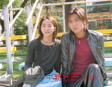 歌星謝霆鋒22日在港島維園拍攝電影《漫畫風(fēng)云》外景,休息期間與一名日藉歌迷合照。中新社傳真鄧慶樂攝