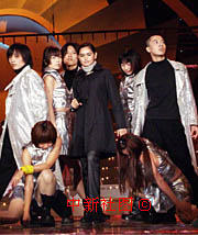 反盜版巨星演唱會(huì)十一月三十日在上海大舞臺(tái)舉行。圖為馬來(lái)西亞人氣最旺的歌星茜蒂·諾哈麗莎(中)在表演。中新社記者 潘索菲 攝
