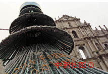 圖文:大三巴牌坊前擺放圣誕樹 2000年12月13日 11:18 ![]() 澳門大三巴牌坊前擺放出一棵高大的圣誕樹,為回歸一周年紀(jì)念前的澳門增添了歡樂(lè)的氣氛。中新社記者 滿會(huì)喬 攝