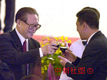 江澤民與何厚鏵舉杯祝賀 2000年12月19日 20:26 ![]() 國家主席江澤民十九日出席澳門特別行政區(qū)成立一周年慶祝晚宴,并與行政長官何厚鏵舉杯祝賀。中新社傳真  宗金柱攝