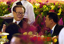 圖片:江澤民同何厚鏵親切交談 2000年12月19日 21:16 ![]() 國(guó)家主席江澤民在慶祝澳門回歸一周年晚宴上同行政長(zhǎng)官何厚鏵親切交談。中新社傳真  宗金柱 攝