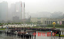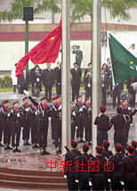 中新社澳門十二月二十日電(記者趙健) 今晨,澳門的天空飄著蒙蒙細(xì)雨,澳門的民眾卻絲毫不減慶;貧w周年的熱情,天剛蒙蒙亮,就扶老攜幼,紛紛趕往金蓮花廣場(chǎng),觀看慶祝澳門特別行政區(qū)成立一周年升旗儀式。 今天的金蓮花廣場(chǎng)充滿莊重神圣的氣氛,中央政府贈(zèng)送給澳門特別行政區(qū)的雕塑“盛世蓮花”顯得金碧輝煌。這尊澳門回歸時(shí)中央政府贈(zèng)送給澳門特區(qū)政府的賀禮,由花莖、花瓣、花蕊組成,象徵著澳門永遠(yuǎn)繁榮昌盛。今年國(guó)慶前夕,為了在這里舉行國(guó)慶升旗儀式、澳門特區(qū)政府將安放“盛世蓮花”的場(chǎng)地開辟為金蓮花廣場(chǎng),成為澳門最重要的升旗儀式之地。廣場(chǎng)四周黃色和紅色的菊花爭(zhēng)奇斗艷,身著制服的澳門儀仗隊(duì)、特警和澳門警察局銀樂(lè)隊(duì)一早就整齊地列隊(duì)等候在這里,等候著升旗的莊嚴(yán)時(shí)刻。 全國(guó)政協(xié)副主席馬萬(wàn)祺、澳門特別行政區(qū)行政長(zhǎng)官何厚鏵及夫人、中央人民政府駐澳門特別行政區(qū)聯(lián)絡(luò)辦公室主任王啟人、外交部駐澳門特別行政區(qū)特派員原燾、中國(guó)人民解放軍駐澳門部隊(duì)司令員劉粵軍和政委賀賢書、澳門特別行政區(qū)主要官員、澳門的全國(guó)人大代表和全國(guó)政協(xié)委員以及澳門各界知名人士、社團(tuán)代表三百多人,也相繼來(lái)到這里,參加升旗儀式。 上午八時(shí)整,在雄壯的國(guó)歌聲中,鮮艷的五星紅旗和綠色的澳門特區(qū)區(qū)旗在金蓮花廣場(chǎng)冉冉升起,為澳門迎來(lái)了嶄新的一天。 帶著兩歲的女兒和五歲的兒子前來(lái)觀看升旗儀式的胡先生夫婦向記者表示,澳門歷來(lái)就是中國(guó)的領(lǐng)土,應(yīng)該讓孩子自小就增加對(duì)國(guó)家和澳門的認(rèn)識(shí)?粗鴩(guó)旗和區(qū)旗在澳門的土地上升起,心中感想很多,特別覺得驕傲和自豪。胡先生夫婦的話代表了眾多澳門民眾的心聲,當(dāng)升旗儀式結(jié)束后,觀禮的民眾仍不舍離去,不少人在飄揚(yáng)的五星紅旗和金色的蓮花前攝影,希望永遠(yuǎn)銘記住這難忘的時(shí)刻。  |